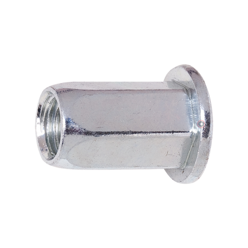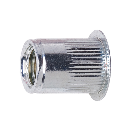Round body rivnuts are the most popular option, especially the knurled body rivnuts (Nutsert "xtralok") due to their great resistance to spinning whilst being installed and vibration after installation. They have a low-profile wide flange head with the option of open or closed end in steel, stainless (304 & 316 grade) and aluminium.